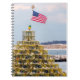 Lobster pot Julgran sjölandskap i Plymouth, Massachusetts med amerikanska flagga utformar den här anteckningsboken.
