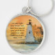 En inspirerande nyckelkedja med en bild av fyr med inställningen sol i bakgrunden. Bibelversen "Låt ditt ljus skina före manar, att de kan se dina bror gärningar och lovorda Far i himlen". Matt. 5:16 visas. Anpassadet är helt och hållet, så att du kan ändra teckensnitt, färg, storlek eller text.