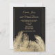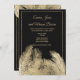 Lyxsvart och tropiska bröllopsinbjudan till blommigten guld handflatan. Den här snyggt guld-inbjudan till tropisk lövbröllop är perfekt för varje klasssofistikerad chic flicka. Den här designen är perfekt för en händelse i trendig och snyggt party. Anpassa den här designen med egen information om meddelande och personlig. Alla designer skrivs ut.