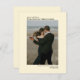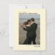 Det här Spara datumkortet är enkelt, modernt, minimalistiskt och klassligt. Den har ett lodrät- eller porträtt-orienterat foto på en bakgrund av elfenben eller kräm-färgad med namn, datum och plats för bröllop och titeln "Spara datum" placerad symmetriskt ovanför och nedanför bild. Artsy och sofistikerad, det här kortet är ett underbart sätt att informera din familj och dina vänner om ditt kommande bröllop.
