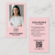 Affärskort för Lodrät av Rosa - minimalistiskt foto QR-kodkodnummer för Logotyp. Denna chic och det minimalistiska affärskortet av lodrät är idealiskt för professioneller som hårstilister, estetiker, gods agent eller alla som vill ha en elegant och modern design. Med en mjuk rosa visas ditt foto, företagets logotyp, namn och titel eller företagets namn, vilket ge det personligt och professionellens beröring. På baksidan hittar du din kontaktinformation, en skannerbar QR-kod och medieikoner i social med frasen "Anslut med oss!" för att göra det enkelt för klienter att förlovad. Med fet svart typografi och en ren utformning av anpassadet är det här affärskortet både mångsidigt och snyggt för alla branscher. Anpassa din i dag och skapa ett varaktigt intryck med detta moderna, öga-fångstande affärskort!