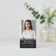 Professionell Photo QR-kodföretag Affärskortet Lodrät för Logotyp. Det här eleganta och enkla affärskortet för lodrät är perfekt för företagsmärken, småföretag, konsulter, frilansare eller vilken professionell som helst som tittar för en modern estetisk elegant. Framsidan har foto, logotyp, namn och titel eller namn i företaget över en svart övertoning vid grund, med svart och vitt typsnitt för ren kontrast. På baksidan accentueras en solid svart bakgrund med svartvit typsnitt och information, inklusive kontaktinformation, QR-kod och social-medieikoner som tillval. Typografi är en förfinad blandning av handskrivna skript-calligrafi och ett klassiskt serif-teckensnitt, som ge designen för en professionell ännu snyggt. Helt anpassade kan du justera typsnitt, färg och layouten till kostym under ditt varumärke.