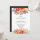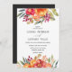 Eleganten och den geologiska utformningen har en krans av vackra målade akrylblommor i orange och gult för rosa, med krukor av färgstark lila och löv för grönt och löv. Kortets omvända i ett helt anpassade mörk grått. Denna inbjudan är perfekt för ett elegant bröllop eller en sommar eller vår firande