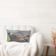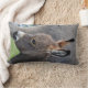 Ett vertikalt rektangulärt dämpar eller kudder med fotoporträtt av en bebisåsna, med ett grå färgbruntlag, och svarten, vit och det solbrända håriga öron som står bredvid det, är modern.
