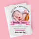 Fira din lilla födelsedag i snyggt baby! Med frasen "stolt introduktion" i lekfull modern typografi ovanför ett lysande cirkelfoto av ditt nyfödda, kommer det här meddelandet säkert att glädja vänner och familj. Ert baby namn är utsökt i en fantastisk modern typografi mot ett mjukt band för rosa, vilket tillför lite elegans till detta speciella ögonblick. glädjen med det här anpassadet för att fånga kärnan i ditt nyfödda införande till världen.