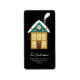 Vårt moderna Helgdag House med märkning för Anpassningsbar av juldekoration visar ett familjehem med snö på taket som dekoreras med färgat ljus och julkrans i klassisk färg av rött, grönt och guld mot svart bakgrund. All text kan uppdateras för att skapa en personlig adressetikett.
