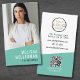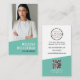 Affärskort för Lodrät av Modern Professionell för fotot-Logotyp QR-kod. Affärskortet för det moderna lodrät är idealiskt för företagsägare, småföretagsägare, frilansare och konsulter som vill ha en ren och polerad utformning. Den nuvarande utformningen visar ett bedövande teal- eller turkossystem i färg, som skapar ett färskt och professionell estetiskt system. Framsidan belyser ditt foto, din logotyp, namn och titel eller ditt företag namn, som erbjuder en personlig men ändå en elegant presentation. Baksidan innehåller din kontaktinformation, en skannerbar QR-kod för snabbnätverk och medieikoner i social med frasen "Anslut med oss!" för sömlös förlovning. Du kan enkelt anpassa vilken som helst av färg för att matcha ditt varumärke eller ditt eget stil, och skapar det unikt. Oavsett om du behållor de pulserande färgtonerna eller väljer en ny palett, garanterar kortets feta typografi och minimalistiska utformning en contemporary som passar vilket yrke som helst. Gör det till ditt eget i dag för ett utmärkt intryck!