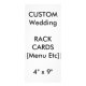 Rackkort för anpassningsbar-meny och program, tryckt på lagrar med en vit täckningsgrad (100 lb.) med en glans avslutat, högkvalitativ utskrift av fullt-färg och fullt. Alternativ på 4 tum x 9 tum (porträtt) eller 9 tum x 4 tum (liggande). Minst 25 kortbeställning. Upp till 50 % rabatt på bulkorder. Personligt bröllp Central - SKAPA, GÖR, KONSTRUERA dina egna MENU- och PROGRAMKORT för PERSONLIGT BRÖLLP från ett helt ANPASSADE, PERSONLIG-MALLARBLANK.