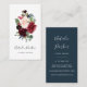 affärskorten för lodrät av elegant för florister, formgivare av blommigtar eller professioneller för evenemangsplanering har en pulant juvelfärgad tonbukett av burgundy marsala och vattenfärgade blommor av rosa med grönt eucalyptus foliage och marinblå knoppar. Anpassa med ditt namn och/eller ditt företag under namn och lägg till din kontaktinformation på motsatt sida i vitt på rikens blå bakgrund