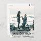 Meddela din speciella dag med elegans och personlig stolthet med vår Förlovning "Spara datum" - Fotovykort. Det här vykortet är inte bara ett meddelande. Det är en skräddarsydd glimt i din kärlek-artikel och bjuder in vänner och familj till i glädjen hos ditt kommande bröllop. Anpassa vykortet med ett eget foto för förlovning, skapar det vara ett unikt och intimt sätt att din upphetsning. Oavsett om du väljer ett klassiskt svartvitt eller en sjudande färgbild med en bild av er som favoriter kommer detta meddelande att bli verkligt speciellt och hjärtligt. Med vykortet visas en elegant och ett modernt skript, vilket ger en aning sofistikering och contemporary stil. Den här designen inslag kompletterar fotot och skapar ett balanserat och attraktivt utseende som fångar kärnan i ditt förhållande och entusiasmen för din framtid tillsammans. Använda det här anpassadets vykort för att dina bröllop-detaljer och ange tonen för din stora dag. Om du anpassar texten efter ditt bröllop-datum, din plats och andra nyckel-uppgifter blir vykortet en omhuldad keepy för dina gäster. Vår "Spara datum"-Förlovning Fotovykort är mer än bara en inbjudan. Det är en firande på resan tillsammans och ett snyggt sätt att meddela bröllop. Grattisar om detta spännande nya kapitel! Må vykortet "Spara datum" vara perfektens början på bröllop-festligheterna.