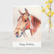 Vacker färg blyertspenna teckning i min buksto med en rosette. Snyggt födelsedagskort för hästälskare.