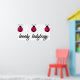 Tre söta illustrationer av nyckelfel dekorerar den här utformningen. Text i skript läser, Lolly Ladybugs.