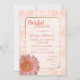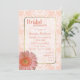 Elegant persiko- och vit damm inbjudningskort för möhippan, med grafik med guld-tonstextområde i mitten och en söt persiko-färgad Gerber-daisy i nedre lämnat hörnet. Text i persikor är fullt anpassade och redo för att anpassa till din möhippa-händelse. En vacker inbjudan till bruden att vara kommer att hålla.