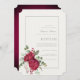 Rik djupt röd blommigt inslag har satt över en underbar vattenfärgsarbetsyta i delikata skuggor av grönt och elfenben, avslutat med elegantens manusjus... som belyser bruden och rummens namn, tillsammans med alla andra händelsedetaljer. På baksidan finns det en monogramdesign som liknar en säl i vax. Resultatet är en inbjudan till elegant bröllop för vilken säsong som helst. Lämplig för både avslappnad och elegant bröllop motiv. Om du vill ha hjälp med designen eller anpassningen bör du inte tveka att kontakta mig via ett meddelande på den här webbplatsen eller ett e-postmeddelande på design@smkoehrn.com
