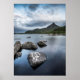 Landskapsfoto av ett sjö och ett berg på Vestvågoya, en ö av Lofoten-skärgården i norra Norgen av Skandinavien.