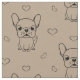 Cute Fransk bulldog-väv för dina synings- och kreativ-projekt. Tecknaden är gjord av enkla, men ändå vackra, Fransk bulldog-illustrationer och en mängd söta små hjärtan som trycks runt hela den söta valpen. Bakgrunden finns i en neutralt kräm färg och den kan lätt bytas ut mot ett annat färg än kostym i det bästa projektet. Snyggt material för alla som äger och kärlek fransk bulldog.