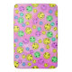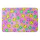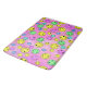 Flera färger som leker emoji ansikte på utstrykt badmat i rosa