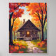 Log Cabin | Fall Foliage Forest Watercolor Poster
