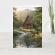 Log Cabin, Stream and Deer, Father's Day Kort