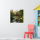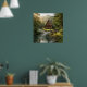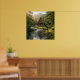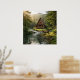 Log Cabin, Stream, Mountains and Deer Nature Art Poster