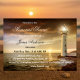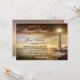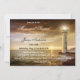 Minnesinbjudan eller begravningsinbjudan med kustplats med den eviga hoppsymbolen: ett fyr. Solnedgången över havet kan också ses som symbolisk och stå i slutet av ett (förhoppningsvis långt och lycklig) liv. Ljus är på väg att gå till efterlivet. Även om den avlidne var ett hav älskare eller har begärt att hans eller hennes aska ska spridas till havs är detta ett underbart sätt att samla in och säga en slutlig farväl.