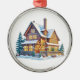 Söt julprydnad med söt vattenfärgsloghytt och gräs träd.