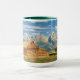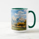 Logga kabinen nära bergskedja mugg