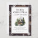 Rustiskt helgdag-kort med en logaritmhytt inuti ett orustiskt trä ram i försedd med snöflingor. Anpassa det här snökortet enkelt till din familj namn och helgdag.