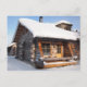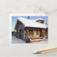 Vykort för en traditionell träloggstuga med snö-täckning i Lappland. Ett idealiskt ställe som tillbringar jultoma helgdagar.