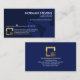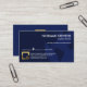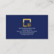 På andra sidan, i en ljusare blå täckmantel, är logotypen guld överst, följt av ditt prestigefyllda namn, kontaktuppgifter och en slogan för att publicera dina tjänster.