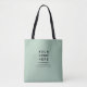 Anpassa enkelt den här minimalistiska enkla grönten och den enkla Chicen för enkel Logotyp Slogan Business Tote Bag. Skapa ditt eget moderna och elegant-säljfrämjande tote bags, en miljövänlig och unik företagspresentant för dina kunder, anställda, studenter, lärare eller för att du marknadsför ditt eget feminina företag. En modern och minimal malldesign med en professionell och ett rent utseende som innehåller logotyp och personlig på framsidan och en logotyp för anpassningsbar som upprepar mönster-bakgrunden på baksidan. Denna återanvändbara väska är en miljövänlig presentidé för att sluta slösa plastpåsar. Ingen minimiorder, någon anpassning av bakgrunden till färg.
