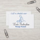Blå logotyp för massageterapeut med många ställen för att lägga till all din egen anpassningsbar, t.ex. namn, mobilt nummer, e-post, webbplats och till och med ditt eget meddelandeutrymme på baksidan.