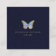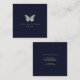 logotyp av fjäril på mörk blått fyrkantigt visitkort