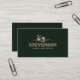 Elegantens minimalistiska stil med gyllene detaljer på mörk grönt bakgrund. Gräsmatta mer logotyp i metallisk ton i guld.