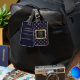 Logotyp av lyxaktig svart guld Metall monogram Bagagebricka