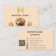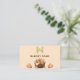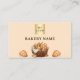 En mjuk persikobakgrund för färgaden. Dekorerad med en basket med bröd och skurkar. Anpassa och lägg till din logotyp och namn på framsidan. Tillbaka: Mallar för Ditt namn, titel, mobilt nummer, e-post och webbplats adress, ditt eget QR-nummer till webbplatsen eller social-mediekontot. Ikoner/konto för Facebook och Instagram.