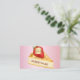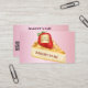 Färgadens bakgrund för rosa övertoning. Dekorerad med en ostekake med en röd jordgubbe. Anpassa och lägg till din logotyp och namn på framsidan. Tillbaka: Mallar för Ditt namn, titel, mobilt nummer, e-post och webbplats adress, ditt eget QR-nummer till webbplatsen eller social-mediekontot. Ikoner/konto för Facebook och Instagram.