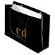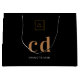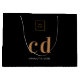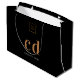 Svart bakgrund, gyllene och vita texter. Anpassa och lägg till logotyp, monogram initialer och namn.