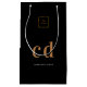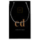 Svart bakgrund, gyllene och vita texter. Anpassa och lägg till logotyp, monogram initialer och namn.