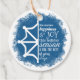 Blå, vit julklapp-märkre med snowflake och typografi. Modern snowflake-grafik kan överföras till klistermärken och andra stationära! Blåteckningar är mångsidiga för marinblått, mörk blått, grått-blått företagstema färg. Ett underbart sätt att visa din logotyp om gåvor till kunder och partners.