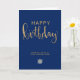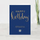 Stilfull modern elegant minimalist Affärs Happy Birthday Grattis-kort med simulering av falskt guld glitter handskrivna texten på en marinblå bakgrund. Observera att guldet i denna design är en platt gul beige brun färgtryck och är inte en faktisk guld metallfolie eller glitter. Byt ut bilden "din logotyp här" med din logotyp eller ta bort den om du vill använda den utan logotyp. Glöm inte att anpassa framsidan och texten på insidan också.