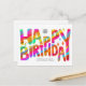 Anpassa detta roliga, horisontella, moderna, färgglada, djärva, varma och snälla "Business Happy Birthday"-grattiskort med stora, vaxartade, handskrivna typsnitt i flera färger mot vit bakgrund. Färgerna i denna design är röd, orange, gul, rosa, blå och grön. Byt ut bilden "ditt logotyp här" mot din logotyp. Glöm inte att anpassa texten på både framsidan och baksidan. Perfekt informell formell födelsedagsönskan för anställda, kunder och affärspartners.