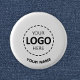 Befordra ditt företag i stil med vår knapp namn-bricka i anpassadet. Med din logotyp och anpassningsbar är den här marknadsföringsdesignen ett praktiskt sätt att visa ditt varumärke på öga. Byt ut logotypen mot din egen och anpassa texten så att den inkluderar din medarbetares namn eller jobbroll. Du kan också lämna texten tom om du vill se ett elegant, minimalistiskt utseende. Bakgrunden färg i nyckelkedjan kan enkelt ändras i Zazzles Design Verktyg för att få största möjliga flexibilitet. Klicka helt enkelt på knappen Redigera med Design verktyg och ändra bakgrunden färg till kostym efter behov. Matcha ditt varumärke färg exakt för perfekt marknadsföring material!