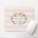 Elegant blommigt logotyp mousssad har ditt namn och/eller ditt företag namn, som är inramat av gräns av lush-vattenfärgblommor i rosa, sage grönt, persika och kräm, på en ton på rosa rand bakgrund i tonläge.