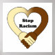 Tycker du om större solidaritet i världen? Visa det med det här objektet. Du ser en logotyp som bildas av handskakningen av en vit man och en svart man. I mitten står det "stoppa rasismen".