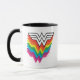 DC-Pride| logotyp av kvinnans ikon med lagrar av regnbåge färger projicerad bakom sig.