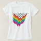 DC-Pride| logotyp av kvinnans ikon med lagrar av regnbåge färger projicerad bakom sig.