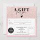Modern chic rosa glitter marble mönster och ett vitt enkelt fyrkantigt presentkort, lägg till din logotyp, med ett ro-guld hjärta. Perfekt- eller julklapp.