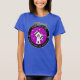 Officiellen FWAS logotyp tryckte stor på en kvinnas blå t-shirt. Ett underbart sätt att visa ert stöd för Fort Worth Astronomical Society!