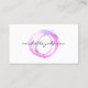 En organisk målad cirkel i rosa och lila kommer att bli en luxe-logotyp på denna mall för visitkort för designern, med tillägg av ditt namn eller ditt företagsnamn namn i en chic. Höj ditt varumärke med den här moderna designen så att du kan se ut som en folkmassa och lämna ett varaktigt intryck. Paletten chic färg är underbar för skönhetsindustrier, makeup artists, hårstilisters, koloristers, nagelsalonger med mera. Konstruktion och design senast 201.00, en butique-studio för varumärkesdesign. © 1201AM-KREATIV